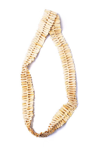 Eating is one of the natural ways to explore a new country. After arriving in China chopsticks were the first ‘tool’ of mediation between me and a new reality. These utensils became my keys for new flavours and for a new culture. I am fascinated by the symbolic meaning as well as the aesthetic and intrinsic qualities of chopsticks. By cutting up, interlacing, imprinting I transformed one the most common objects used to create structures that became wearable pieces inspired by my new surroundings. The work is my intuitive analysis of China and its flavours, a very fast digestion of all the visual inputs that I got during this stay. This body of work consists of 157 pairs of disposable chopsticks. I collected the chopsticks that came with every take- away meal and asked the staff of the gallery to use chopsticks which were made to be washed and reused after meals.